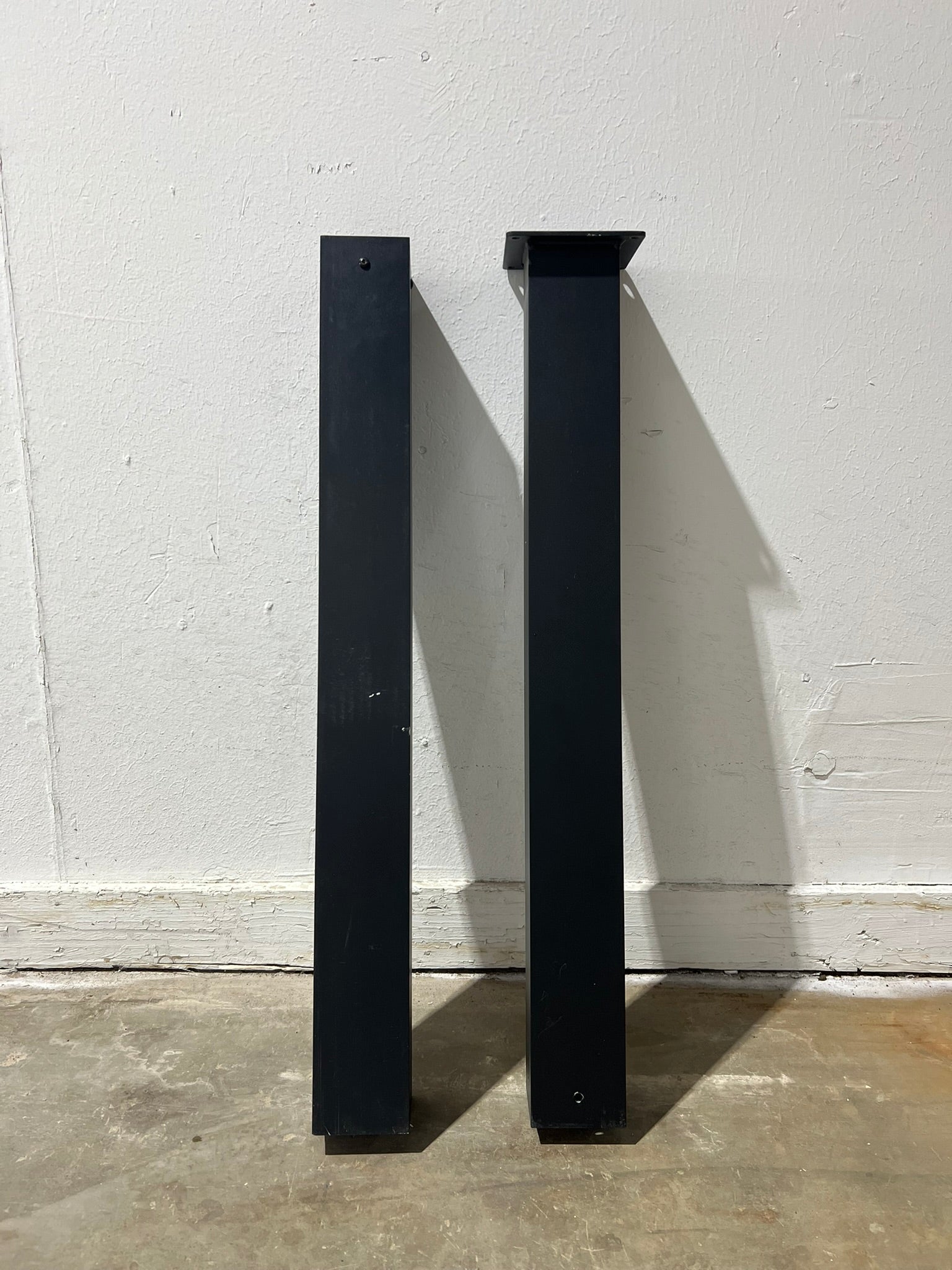 This angled structural post is a versatile item designed for various support needs. With its unique angled design, it can be used in different settings to provide stability. It is made of a durable metal material with a smooth black matte finish.
