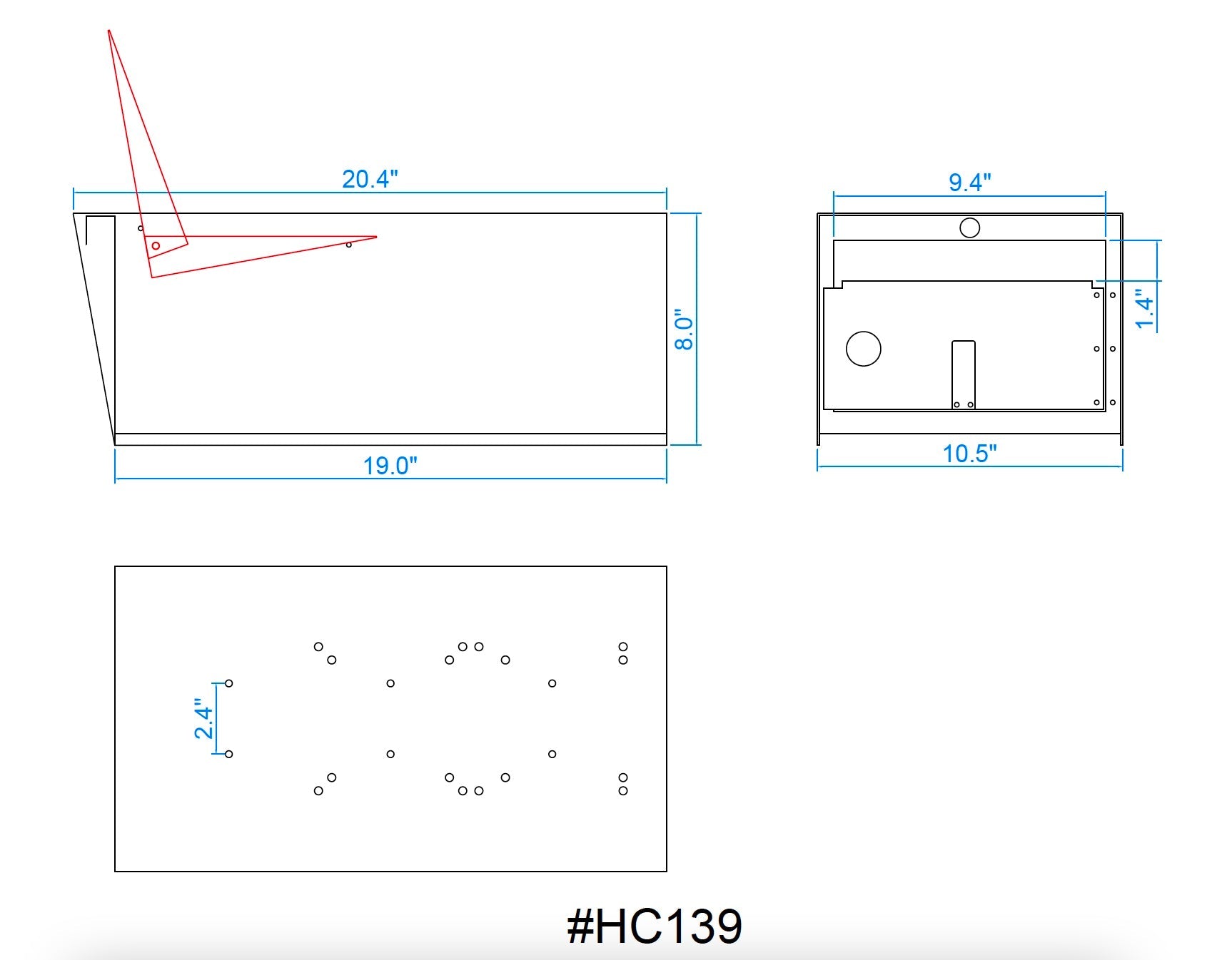 | Mailbox Length | ~20.4” (top) to 19.0” (bottom) |